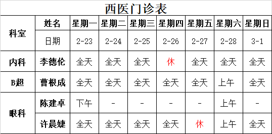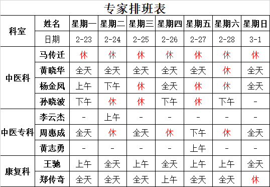 太湖中医医院《2026-2-23至2026-3-1》排班