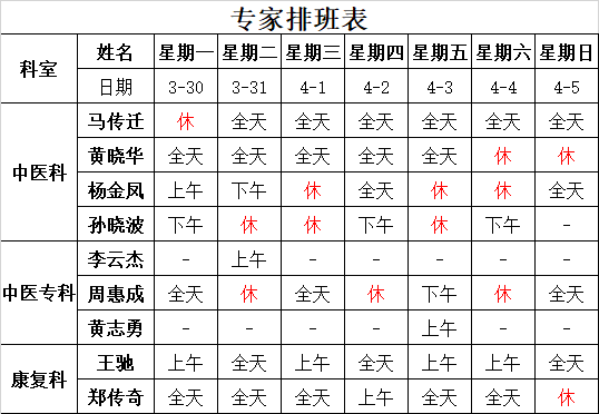 太湖中医医院《2026-3-30至2026-4-05》排班