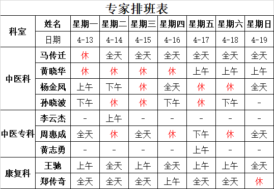 太湖中医医院《2026-4-13至2026-4-19》排班