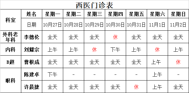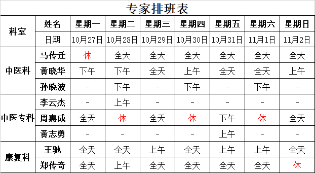 太湖中医医院《2025-10-27至2025-11-02》排班表