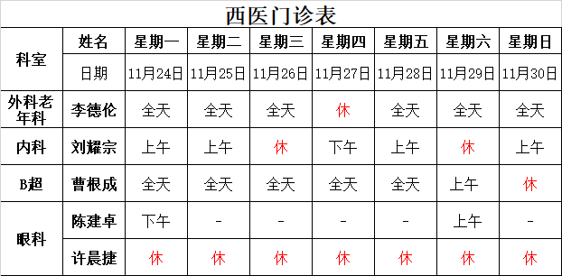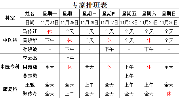 太湖中医医院《2025-11-24至2025-11-30》排班表