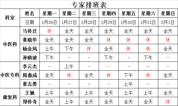 太湖中医医院《2026-1-26至2026-2-1》排班
