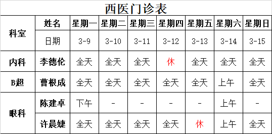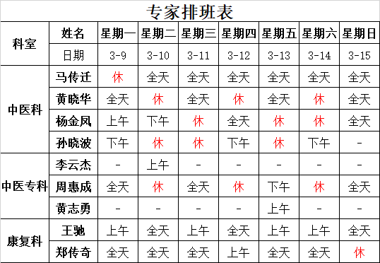 太湖中医医院《2026-3-09至2026-3-15》排班