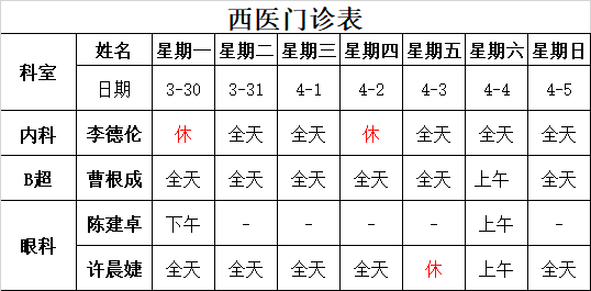 太湖中医医院《2026-3-30至2026-4-05》排班