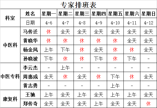 太湖中医医院《2026-4-06至2026-4-12》排班