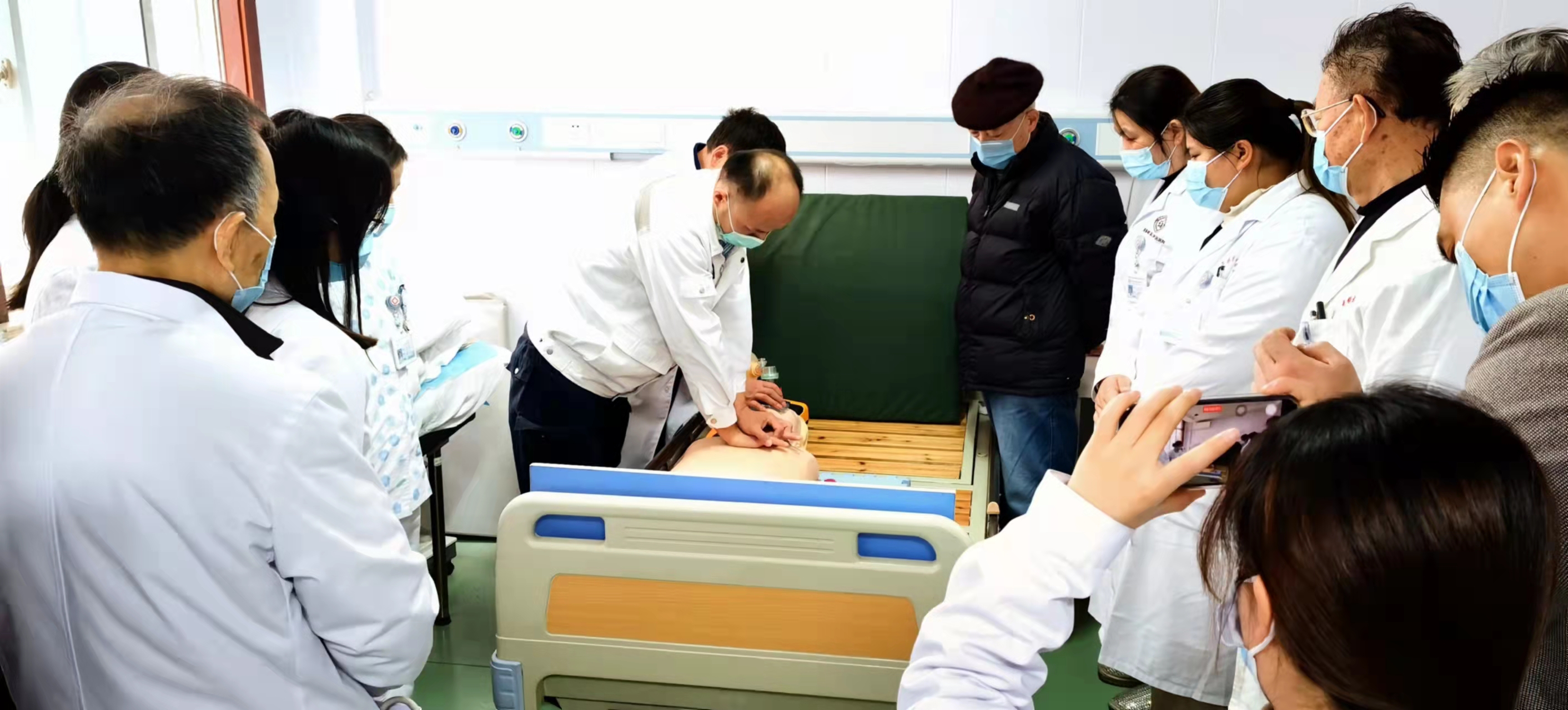 无锡太湖中医医院邀请到无锡急救中心王祥铎副主任医院现场指导心肺复苏以及气管插管等抢救科目 ,全院医护人员认真学习,做好笔记,并进行全员考核。